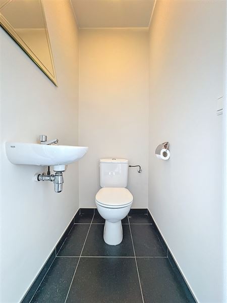 Vierde verdiep : inkom met vestiaire en gastentoilet, lichtrijke leefruimte met parket + schuifraam naar het groot terras met prachtig vergezicht op het water (Kleine Bassin en Ronde Kom), volledig geïnstalleerde leefkeuken, ruime bering/wasplaats en slaapkamer.