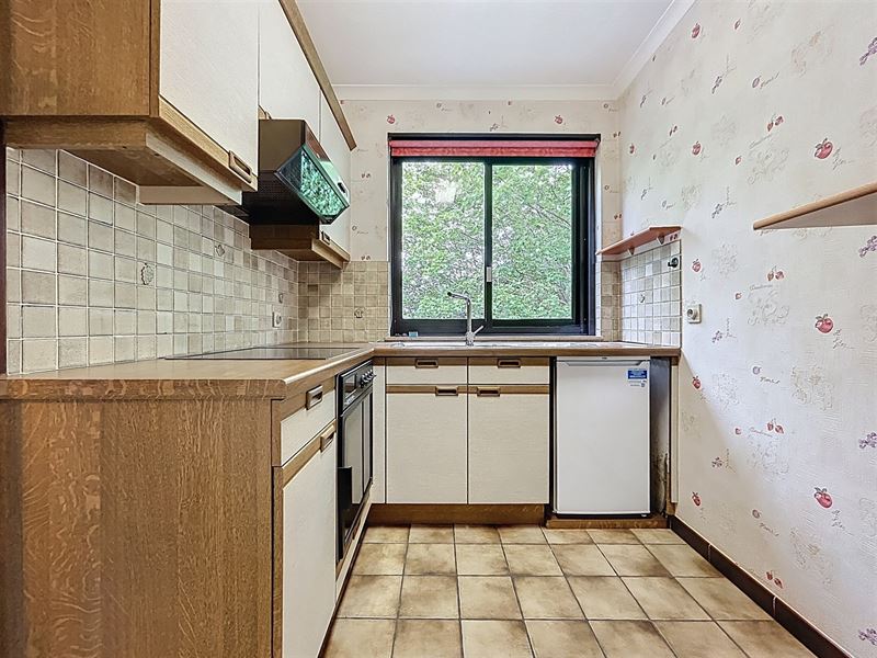 Ruime inkomhal, leefruimte met aanpalend terras en zicht op groen, aparte keuken met ingebouwde toestellen. 1ste slaapkamer met aanpalend terras achteraan met open zicht, 2de slaapkamer is zeer ruim.