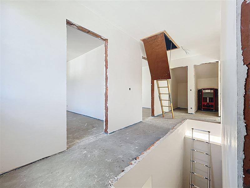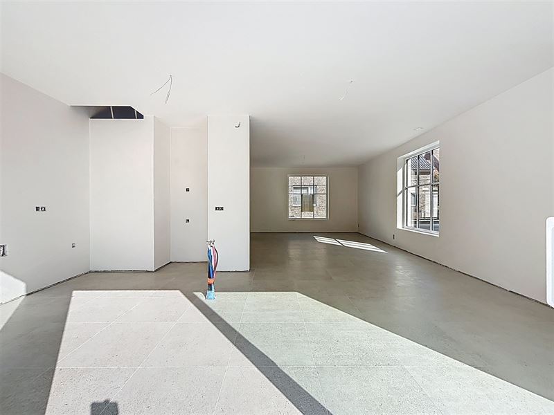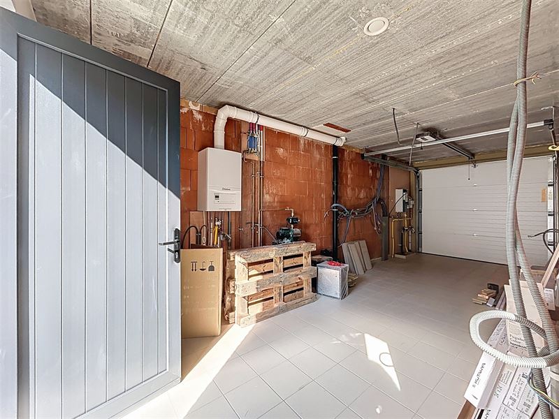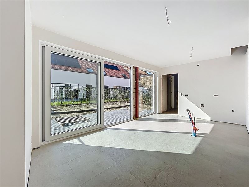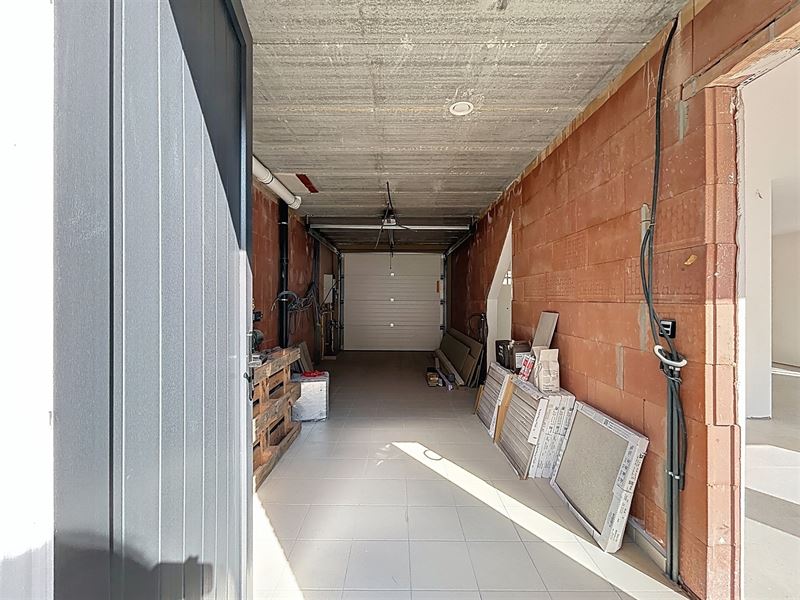 Inkomhal, gastentoilet, lichtrijke leefruimte met open keuken - de keuken kan nog vrij gekozen worden bij Kaster keukens Roeselare. Inpandige garage met sectionale poort en doorgang naar de tuin.