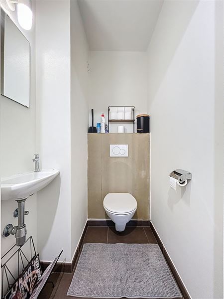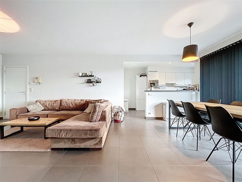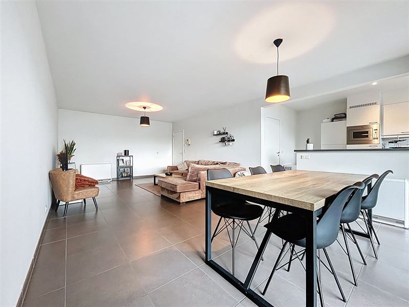 Dit modern en lichtrijk appartement omvat een ruime inkomhal, apart toilet, een ruime leefruimte met open, volledig ingerichte keuken en een berging/technische ruimte.