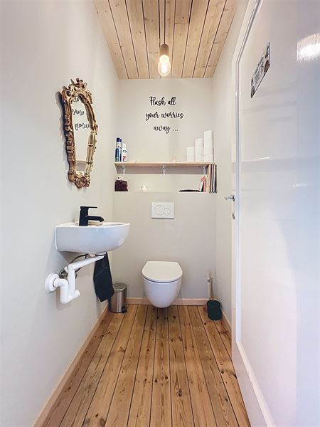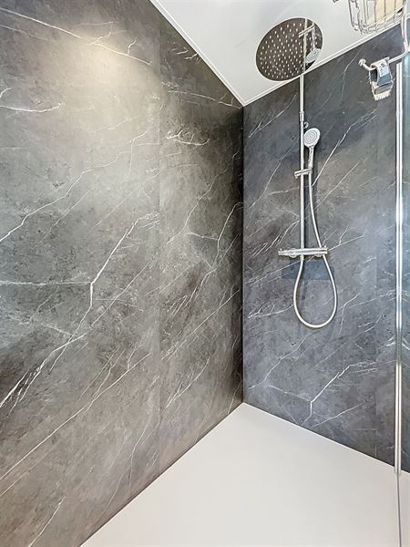 - Gerenoveerde badkamer met bad, inloopdouche en lavabo
