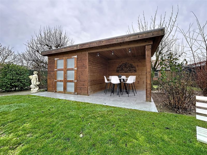 Achteraan bevindt zich de zuidwestgerichte tuin, recent tuinhuis met overdekt terras.
