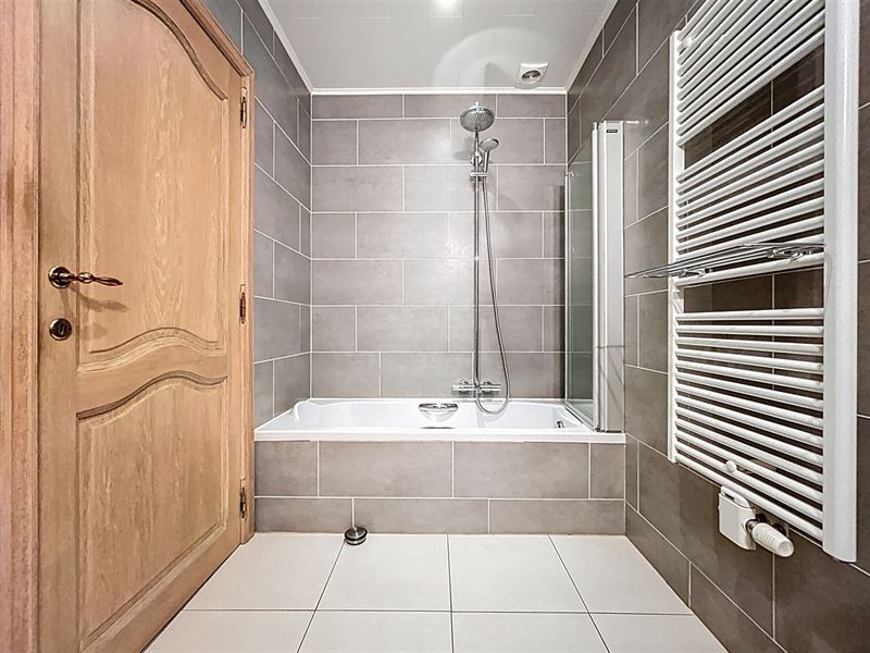 Ruime inkomhal, apart toilet, twee volwaardige kamers en één kinderkamer (momenteel in gebruik als dressing), badkamer met lavabo en bubbelbad.