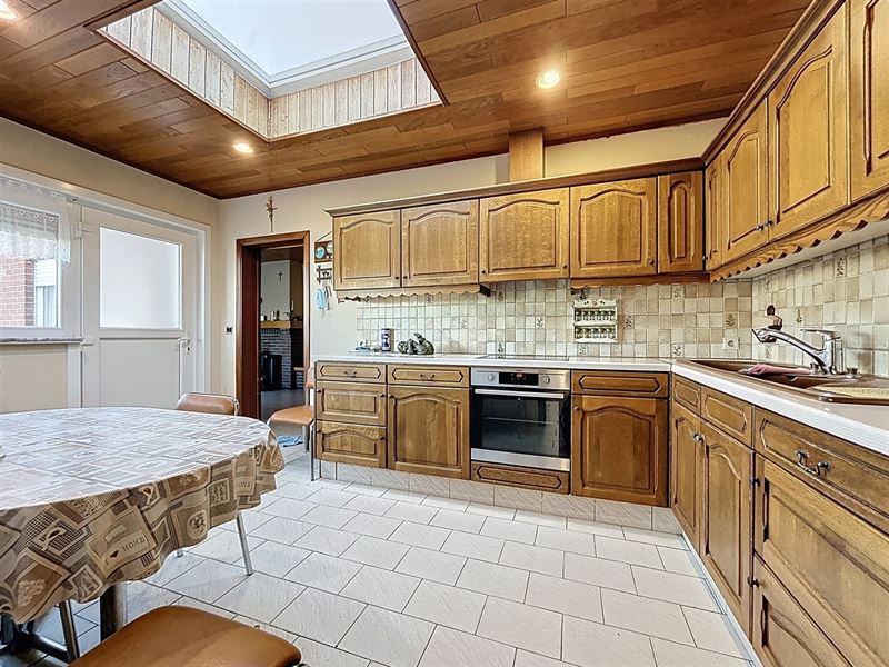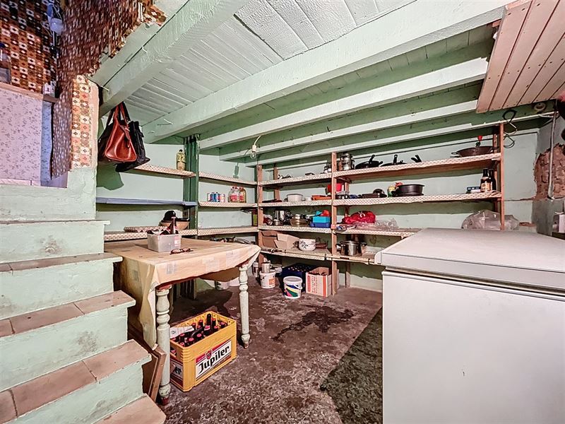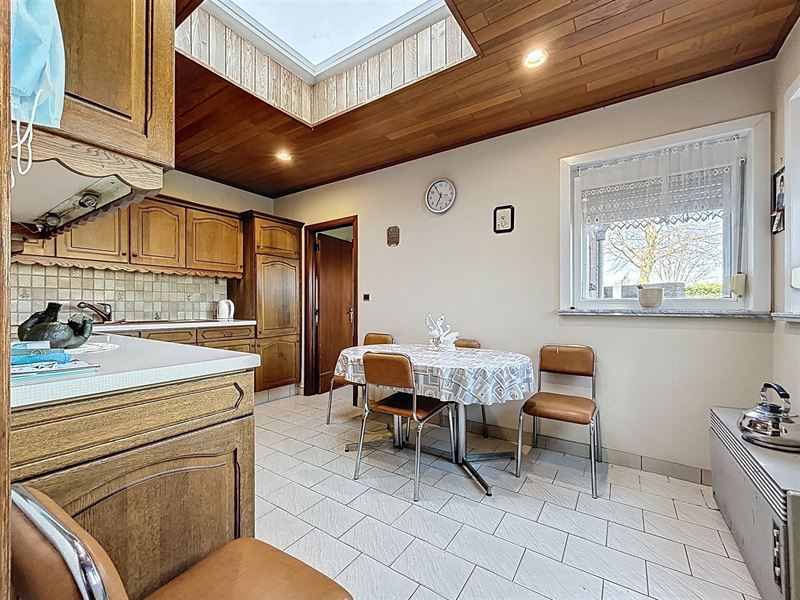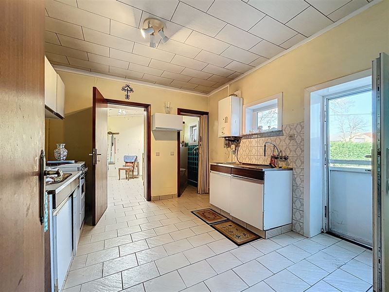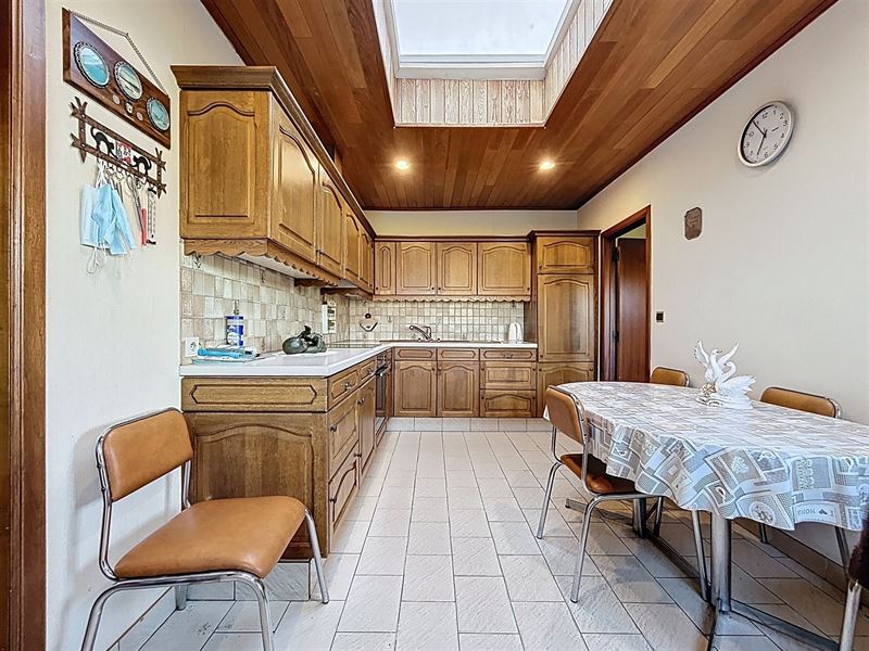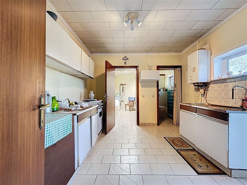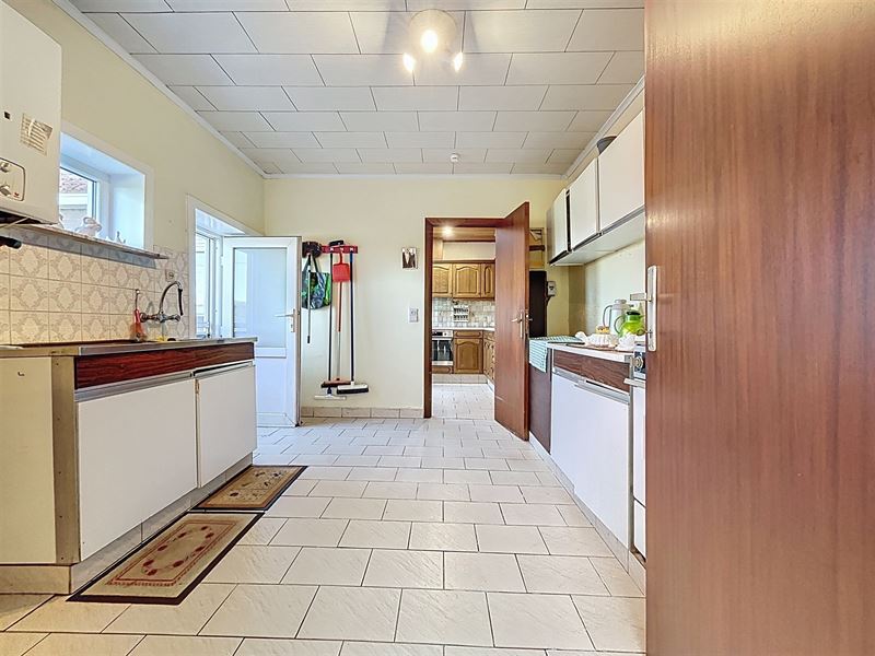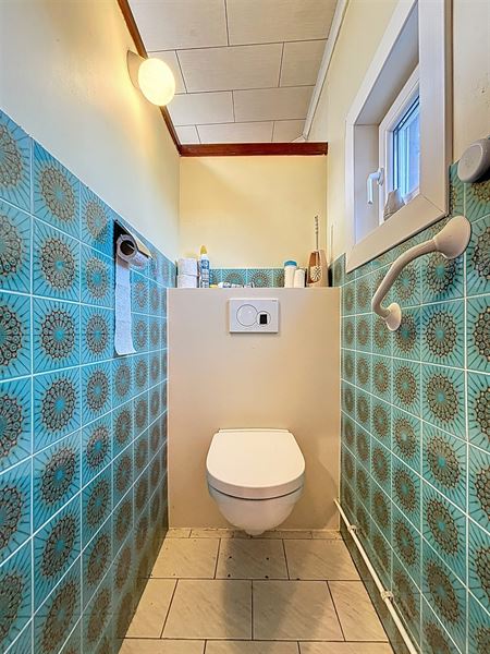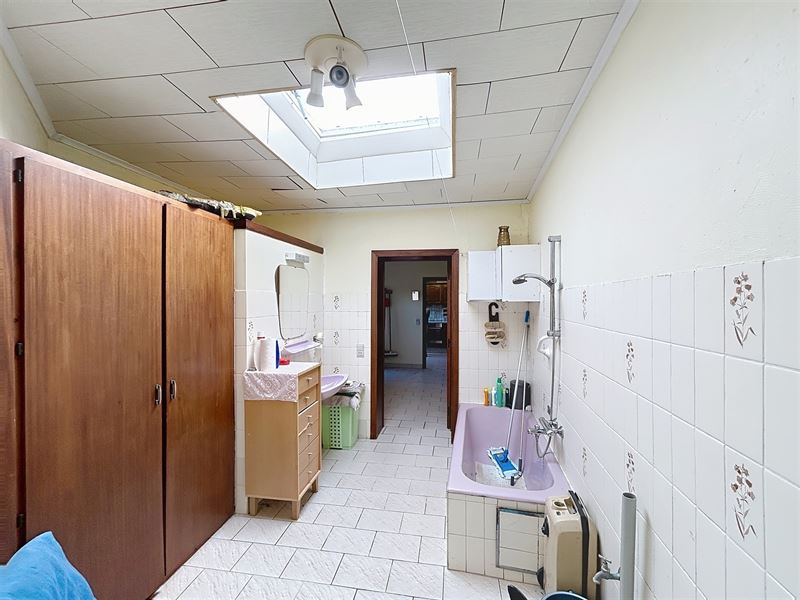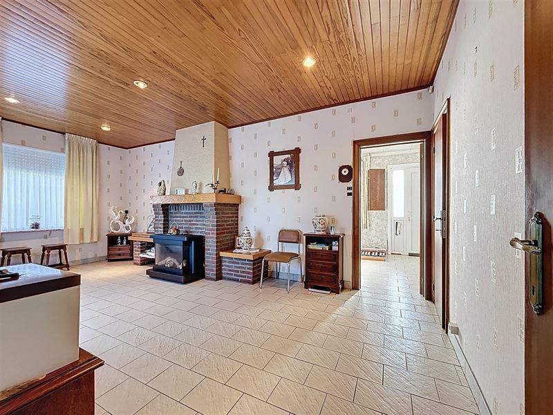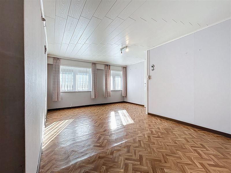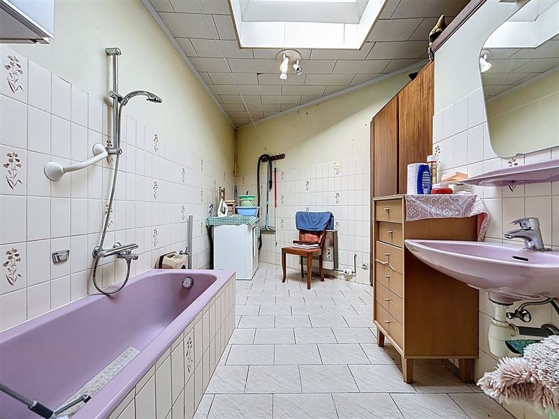 Eerste leefruimte met aanstluitend tweede leefruimte, aparte keuken met bijkeuken, apart toilet, badkamer met bad, lavabo en aansluiting wasmachine.