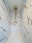 Moderne badkamer met ligbad, inloopdouche, dubbele lavabo en toilet