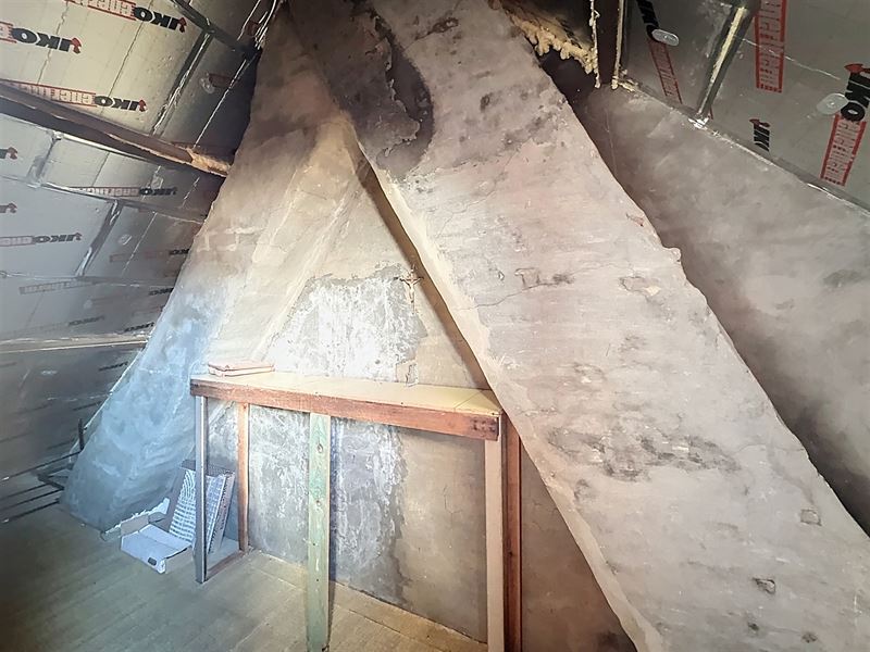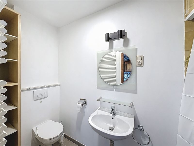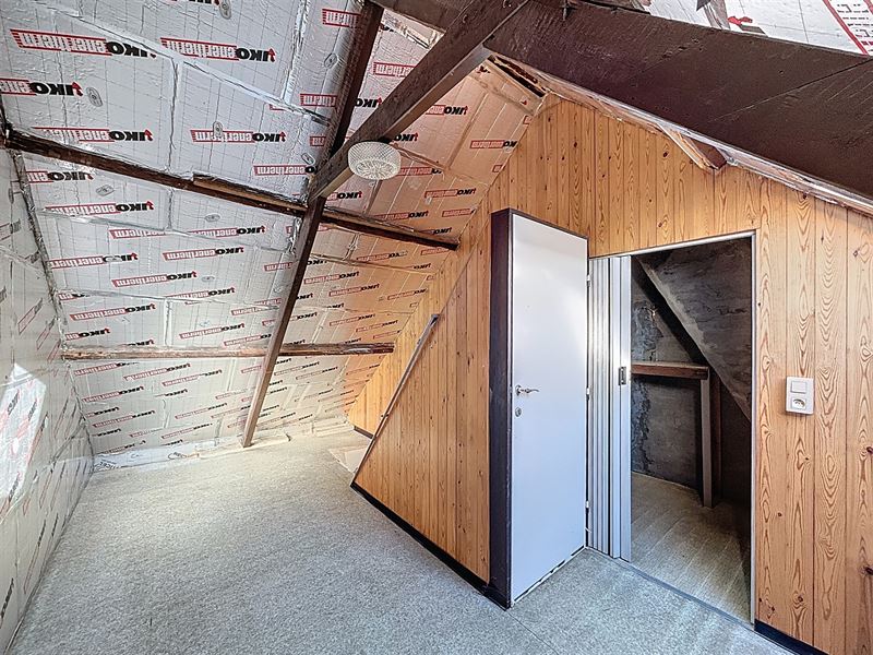 Inkomhal, leefruimte met open keuken, badkamer met douche & toilet, 2 slaapkamers, apart toilet en een zolderruimte.