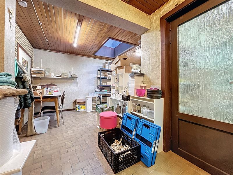 Het handelspand bestaat uit een winkelruimte met achteraan stockageplaats met keukenruimte en sanitaire voorziening.