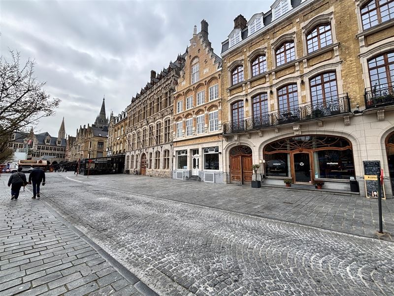 inkomhal met ruim gastentoilet, lichtrijke leefruimte met open keuken voorzien van alle comfort, volledig overdekt terras met prachtig zicht op de Grote Markt van Ieper.