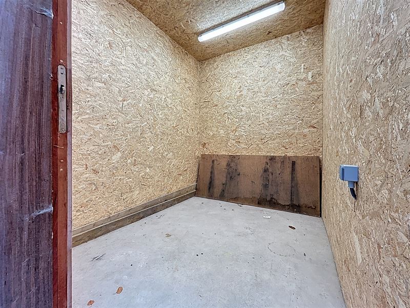 Inkomhal met gastentoilet, berging/technische ruimte (3.97m2), leefruimte met open keuken met ingebouwde toestellen (38.98m2), extra berging onder de trap.