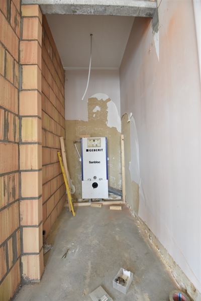 Nr. 1 (106m²) : Gelijkvloers: inkom met gastentoilet, lichtrijke woonkamer met open keuken, berging met wasplaats, ruime droge kelder en auto-standplaats.