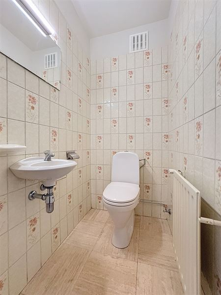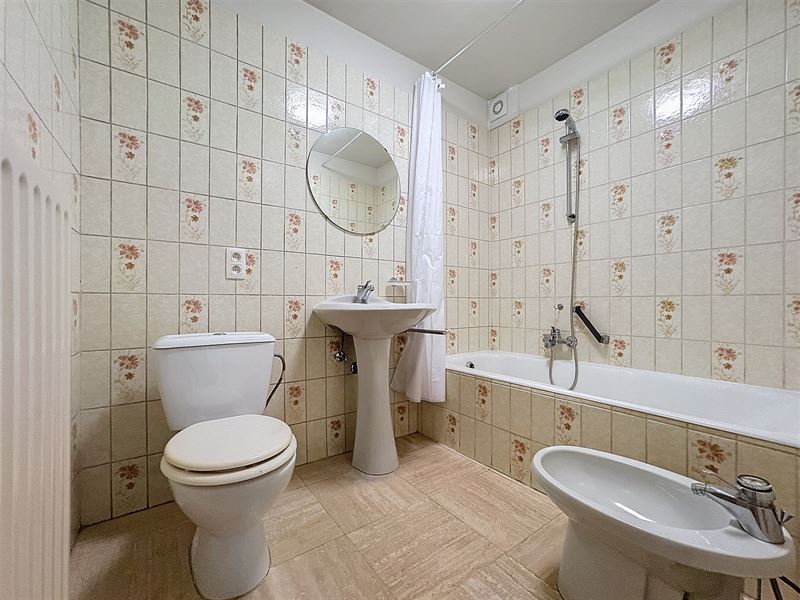 mooie inkom met vestiaire, gastentoilet, lichtrijke woonkamer met uitzicht op de Noordstraat, geïnstalleerde keuken voorzien van nieuwe toestellen (frigo, oven, kookplaat en vaatwas) en terrasje, aparte berging/wasplaats, badkamer met ligbad/douche, wastafel, toilet en bidet, 2 grote slaapkamers (voorzien van kasten en wastafel) die toegang bieden tot het overdekt terras achteraan (2 aparte buitenbergingen) en privatieve kelderberging.