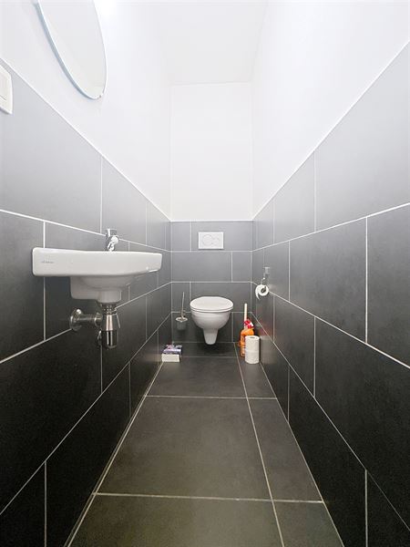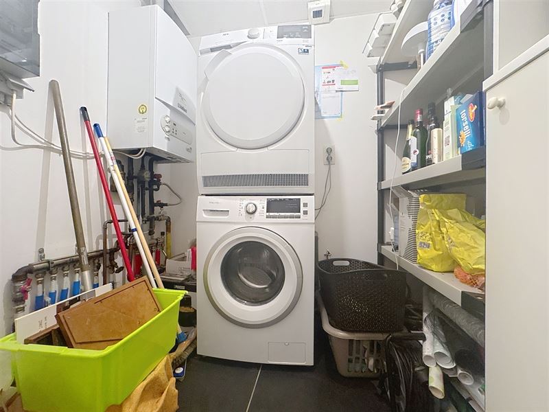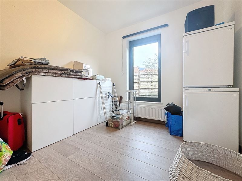 Indeling: Inkom, gastentoilet, ruime lichtrijke leefruimte (plaats salon en eetplaats), volledig geïnstalleerde open keuken (voorzien van toestellen) met aansluiting op het overdekt terras en volledig afgesloten tuin, 2 grote slaapkamers, badkamer (bad/douche, lavabo met meubel) en aparte (technische) berging/wasplaats.