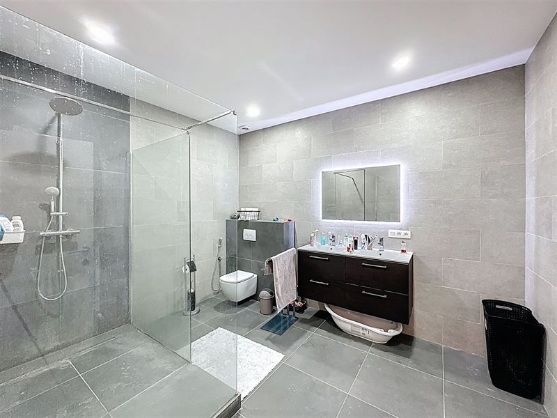 Eerste verdiep: 3 grote slaapkamers, badkamer (inloopdouche, toilet en lavabomeubel) en een tweede badkamer (ligbad/douche en eveneens een lavabomeubel).