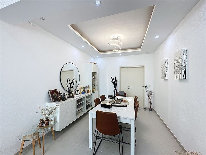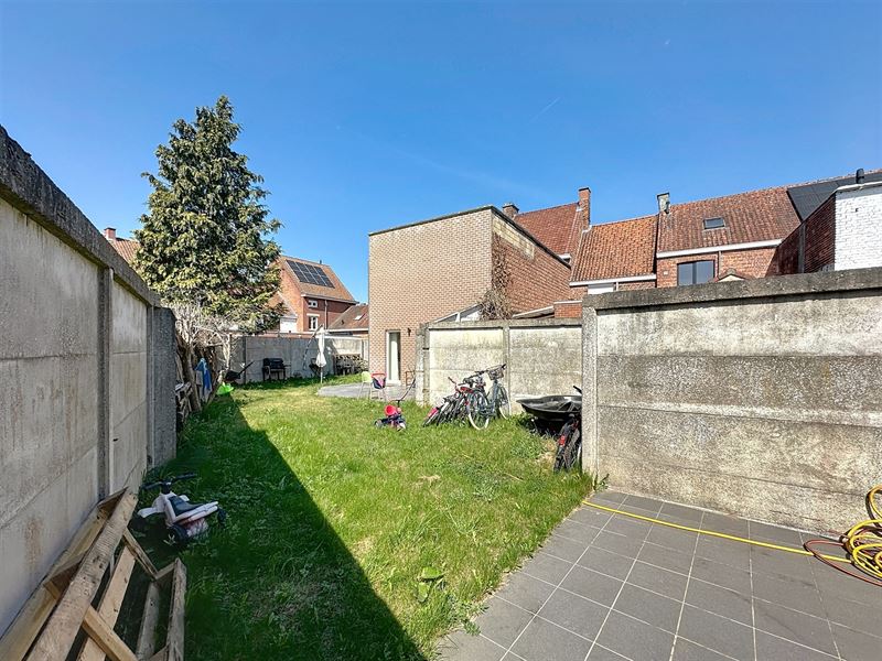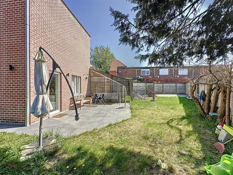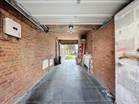 Buiten geniet u van een zuidgerichte tuin met 2 terrassen. Via de tuin heeft u toegang tot een diepe garage (mog. plaatsen 2 wagens).