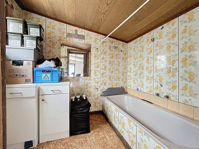 Gelijkvloers: inkomhal, wasplaats (voorzien om in te richten als badkamer), vernieuwde keuken met aansluitend leefruimte, kinderkamer en ruime kamer.